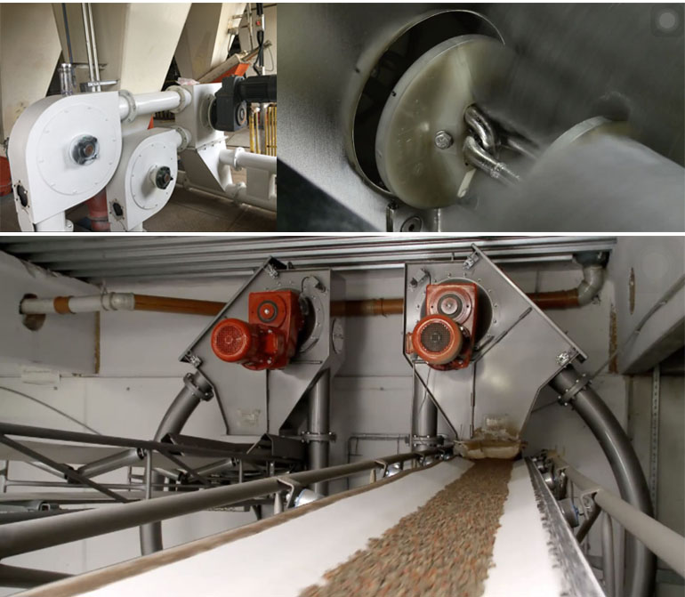 5) 輸送原料沿著管子在兩個盤片中間平滑向前輸送,基本上沒有摩擦,所以物料破損少,緩慢的彎道輸送使很少的物料會產生破碎;